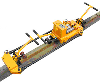 5、完成作業(yè)后,向上搬動(dòng)各夾具體上的扳把7,通過棘爪將走行輪落在鋼軌面上,推行至下一軌縫處或整機(jī)下道。