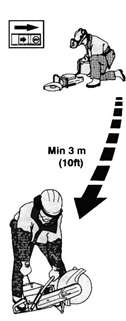 l 避免在不利條件下鋸軌,如:濃霧、大雨、強(qiáng)風(fēng)或極冷的天氣等。在不利條件下工作易引起疲勞,甚至?xí)霈F(xiàn)危險(xiǎn)后果。 l 若現(xiàn)場(chǎng)未準(zhǔn)備就緒,或站立未穩(wěn),請(qǐng)勿開(kāi)始工作。檢查周?chē)袩o(wú)雜物,確保鋸軌過(guò)程中不會(huì)有任何雜物意外落下或飛起而造成傷害。斜坡地段工作時(shí),更要加倍注意。 l 在鋸片旋轉(zhuǎn)狀態(tài)下,要隨時(shí)注意,不要讓衣服或身體的某一部分接觸鋸片。 l 發(fā)動(dòng)機(jī)啟動(dòng)后,請(qǐng)保持您的位置遠(yuǎn)離鋸片。 l 啟動(dòng)前,務(wù)必確保所有安保裝置都已安牢。 l 為保安全,請(qǐng)務(wù)必確保工作現(xiàn)場(chǎng)照明充足。 l 對(duì)操作者而言,有些工作位是強(qiáng)制要求的。 l 檢查周?chē)闆r,確保沒(méi)有任何電線(xiàn)電纜橫穿鋸軌區(qū)域。
